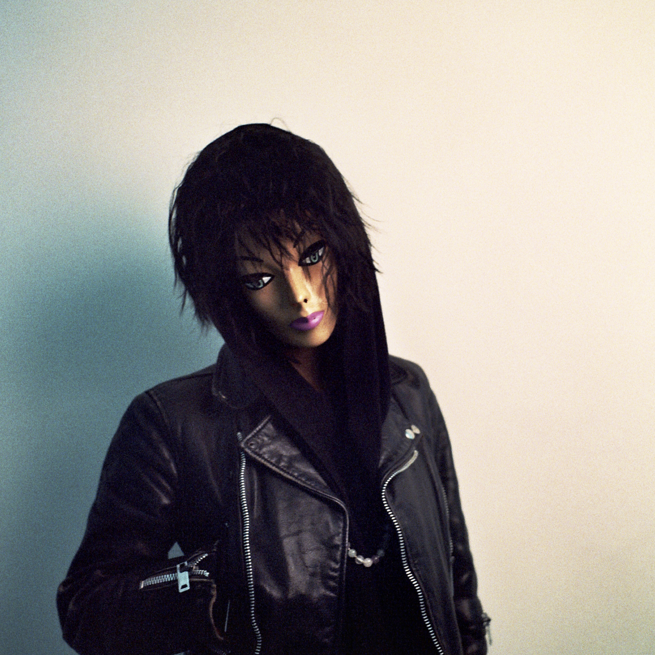 She walked on set and leaned against the wall and pulled her hood up. I asked her to look in the camera but she was wearing a mask so it was hard to determine where the mask eyes were looking when she moved her head, it was bizarre. After a few frames Narcissister stood still and said “You’re the photographer, direct me” so I asked her to turn to the light, I took 2 more frames. I stepped back and asked her to take her hands out of her pockets, she refused, they weren’t “done,” she protested, so she left them in and I moved on taking another 2 frames. Then I looked up and saw those vacant mask eyes looking back at me and realized we were done.