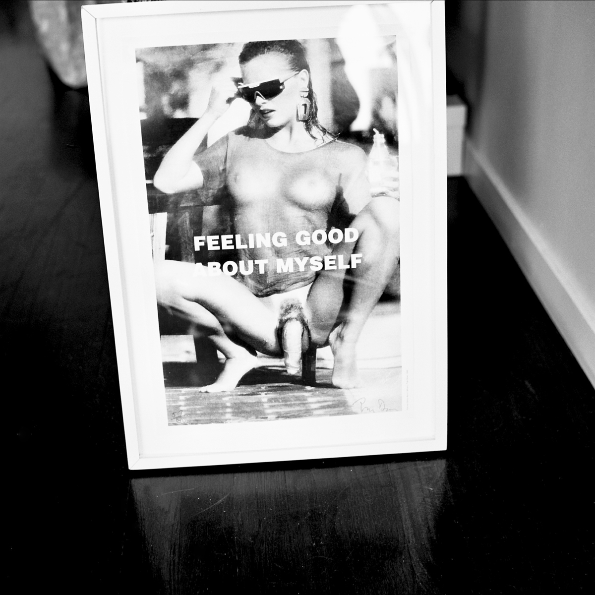On wall: “Erotic Decorative Objects” by Dean Sameshima.