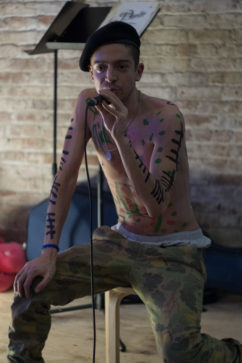 Manuel Solano is a multidisciplinary artist whose first solo show at Museo Carrillo Gil opened last year, in Mexico City. The exhibition consisted of mostly paintings from their series Blind Transgender with AIDS, made shortly after he lost his eyesight in 2014 due to HIV-related complications. (Solano has identified as both transgender and nonbinary, but uses masculine pronouns). “The impression I have is that I was left for dead,” he told writer Benoît Loiseau in GAYLETTER Issue 7.