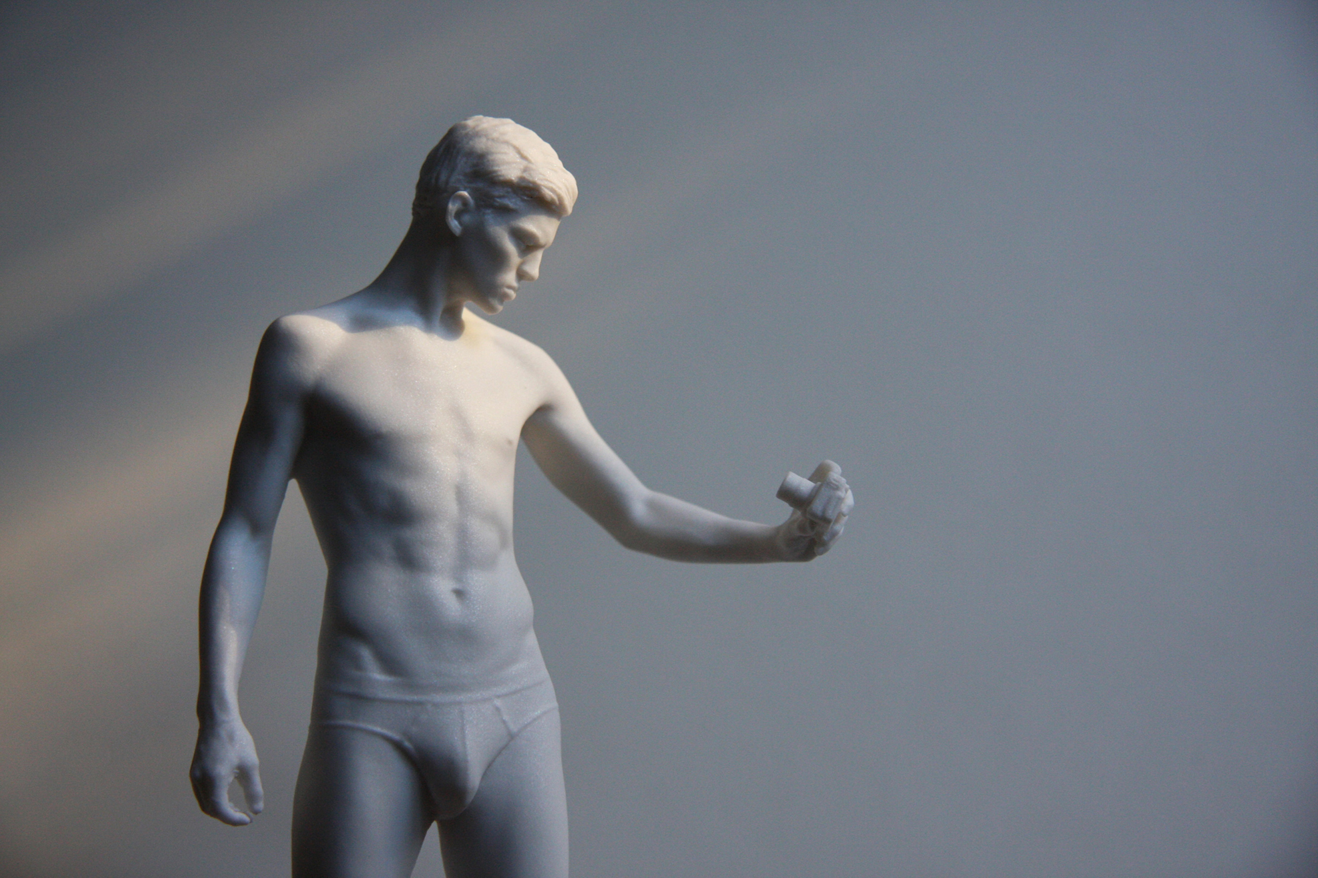 London-based artist Stuart Sandford has been working on his ongoing project ‘Sebastian‘ for the last two years. Sebastian is an 8ft stainless steel statue of the model Sebastian Sauvé taking a selfie. Stuart describes it as a “perfect 21st century embodiment of male beauty that combines new and old technologies and an actual professional model as its basis.” He created this statue with Sebastian in mind, “once the idea was fully formed Sebastian Sauvé was my first choice. I wanted to reference classical works in the look and feel of the piece and he has the perfect look, just check out those lips and nose and profile…”