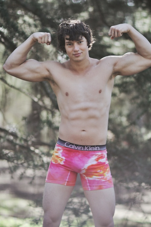 The project is simple enough: King takes nice, well-fitting underwear brands (Hugo Boss, Emporio Armani, Adidas, etc.), washes them in all kinds of pretty tie dye designs, and then pulls from a roster of handsome, beefy boys to wear them for the Etsy catalogue. Sounds totally great, right? If the price is a little too steep for you (undies are $35 a pop; long johns go up to $80) then don’t worry — you can always cruise the line’s NSFW Tumblr blog and ogle the models until you save up enough cash. Have a look at some of the sexy men wearing these briefs, doesn’t it make you want to be outdoor in nature wearing only your underpants?