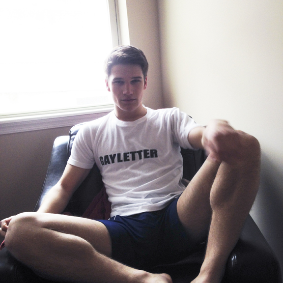 We first saw Gavin on Instagram and we thought he was adorable, so we decided to mail him a GAYLETTER t-shirt and told him to send us a few selfies of himself wearing it — and of course shirtless. He used his iPhone 5 and here’s what we got… He looks very handsome wearing our t-shirt and rather comfortable, don’t you think?