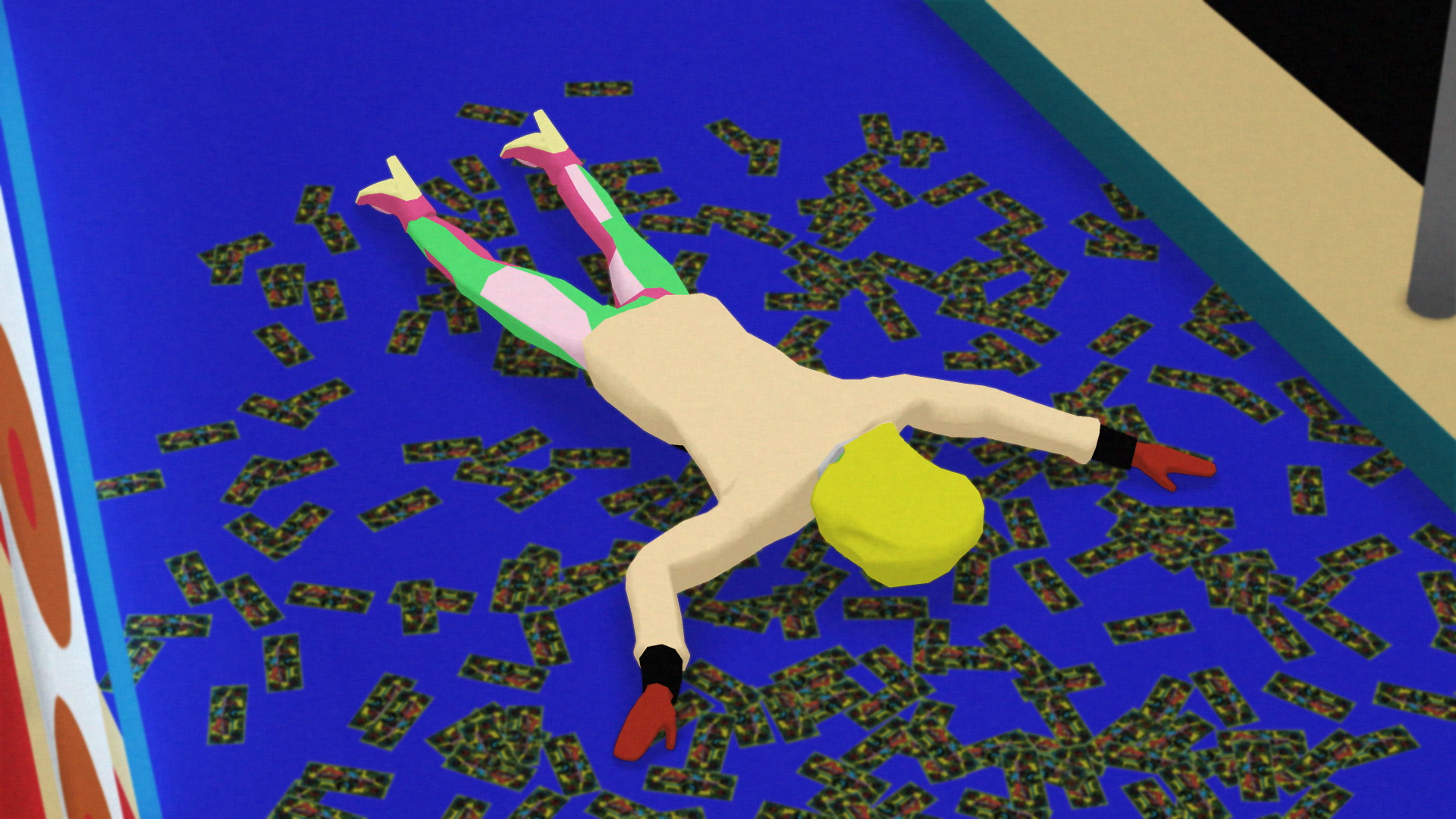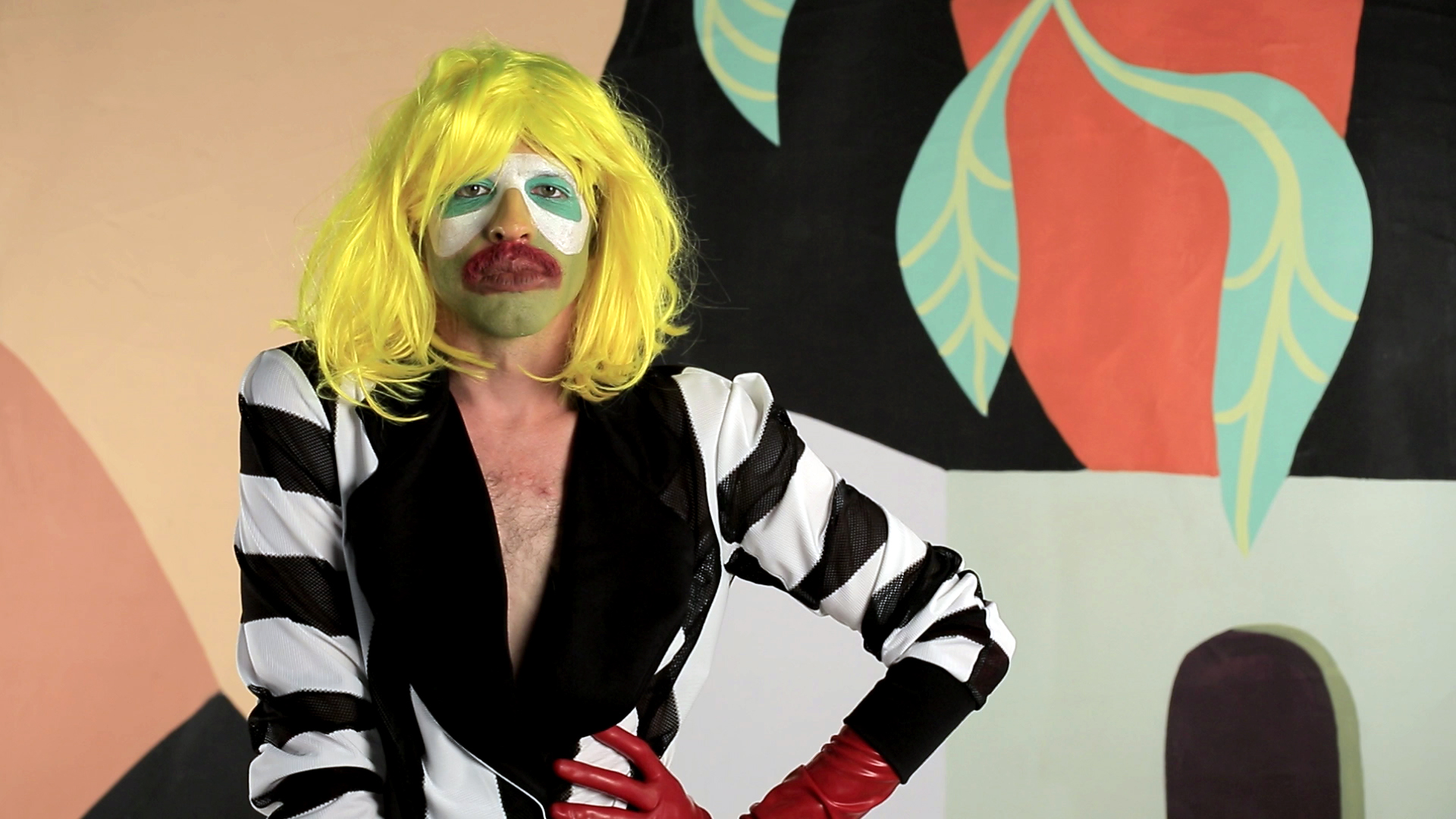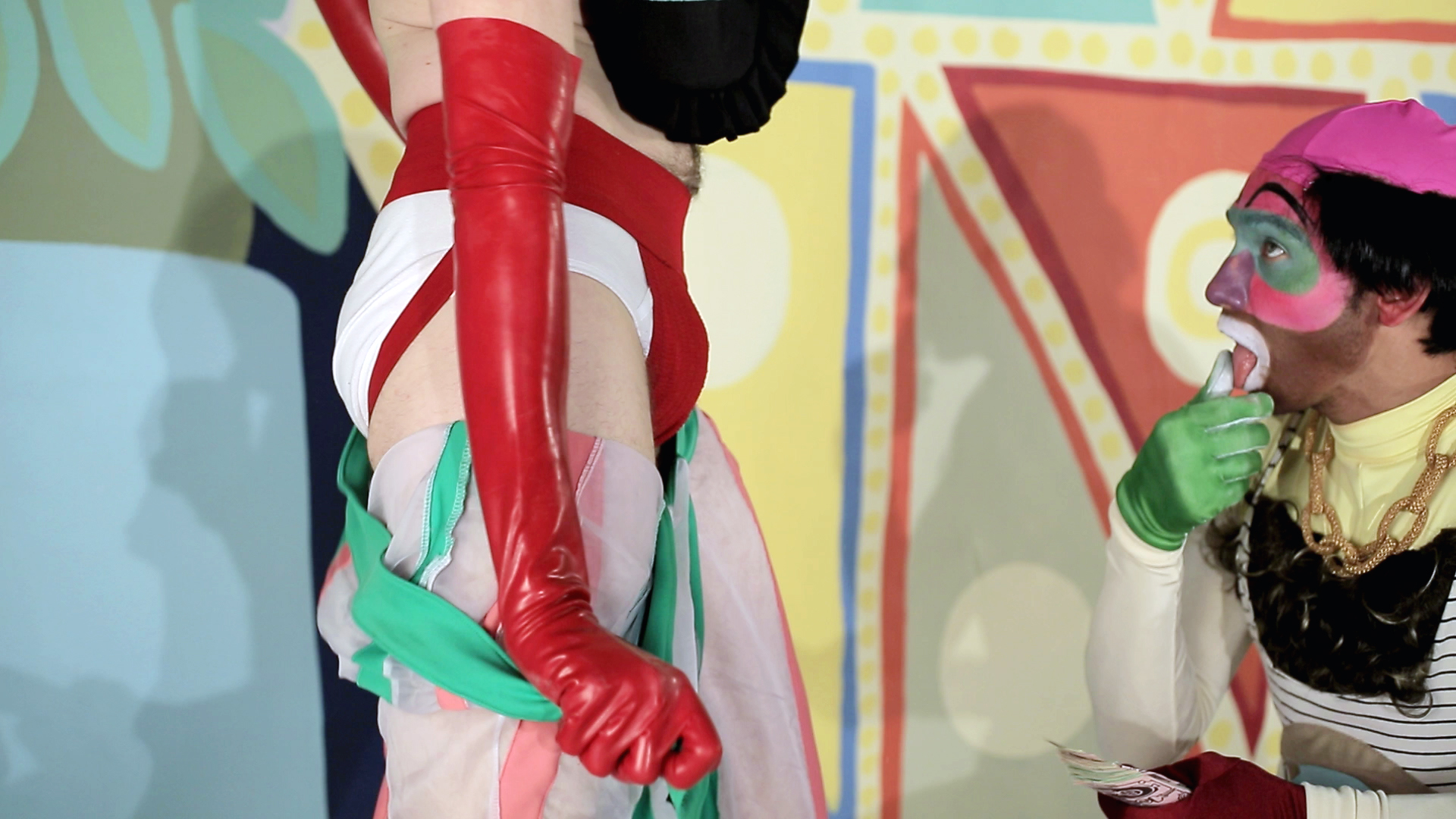 Live Nude Dancing shifts from absurd realities to fantasies on an extremely lavish, colourful, disorientating and chaotic stage that somewhat seems like a metaphorical wrestling ring. This short film also features the track Greedy Boy by Alex Black. We spoke to Daniel Trese about the piece.