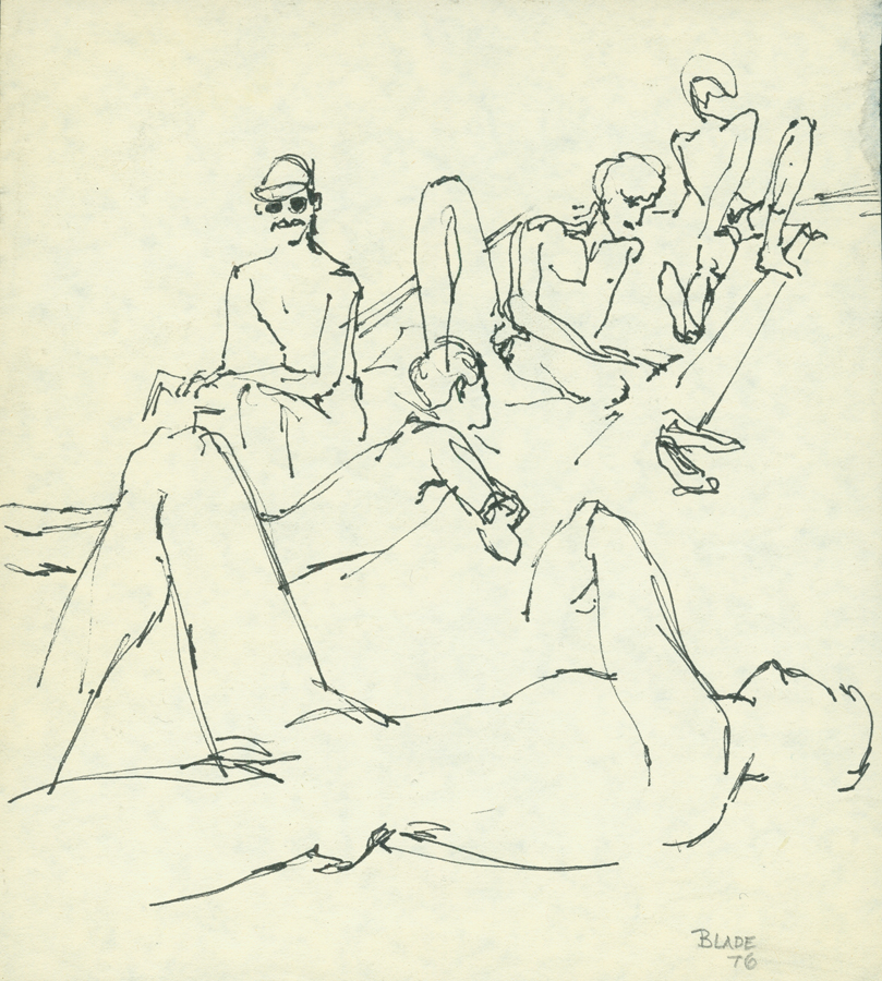 Neal Bate (Blade), Untitled, 1976, Ink on paper, 8″x7.25″. Collection of Leslie Lohman Museum.