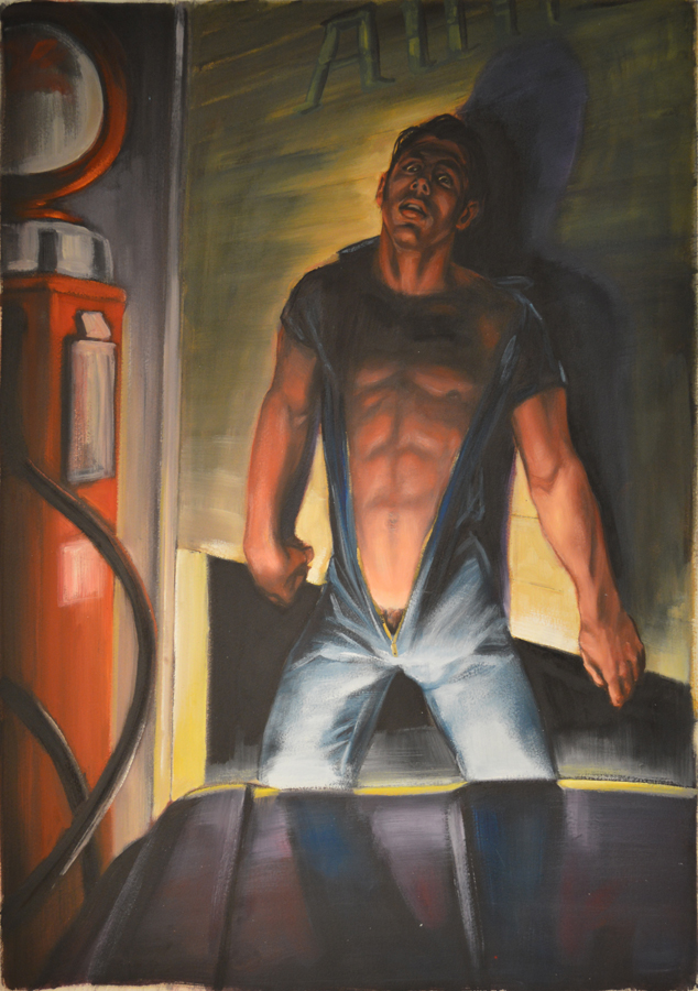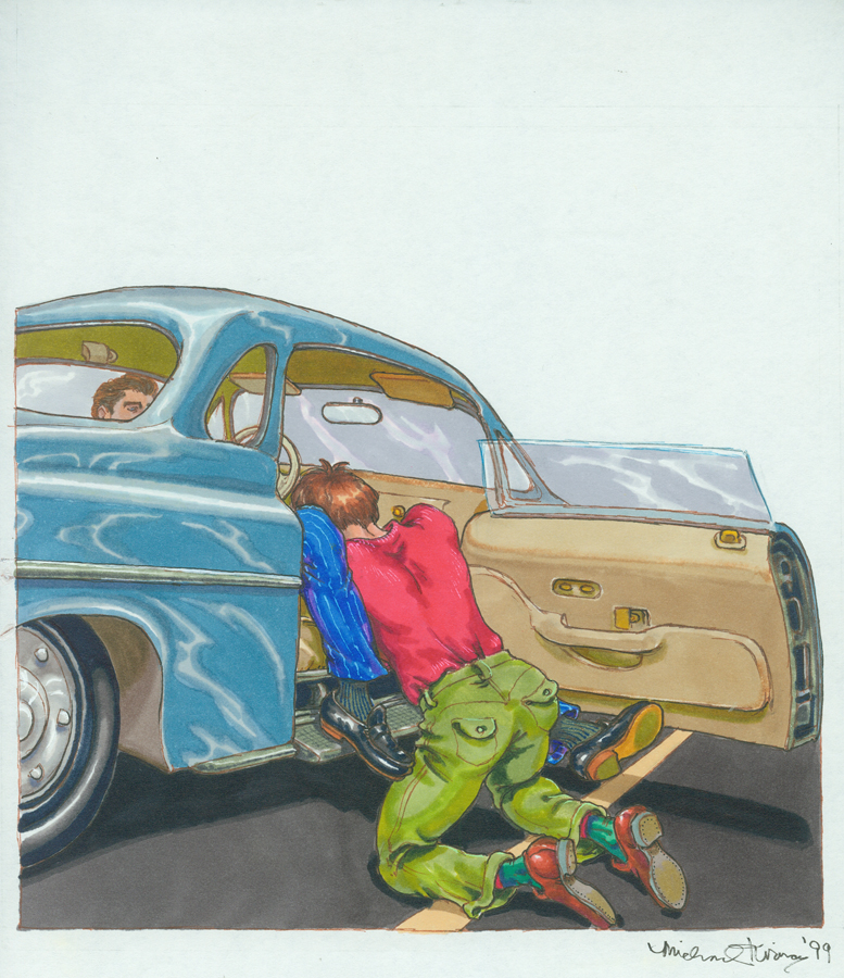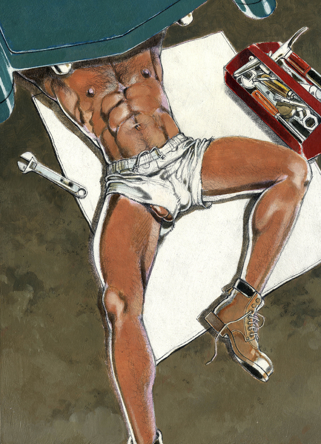 Kent, The Mechanic, 1992, Acrylic and pencil on illustration board, 13″x9.75″. Published in MEN November 1992. Courtesy of the artist.