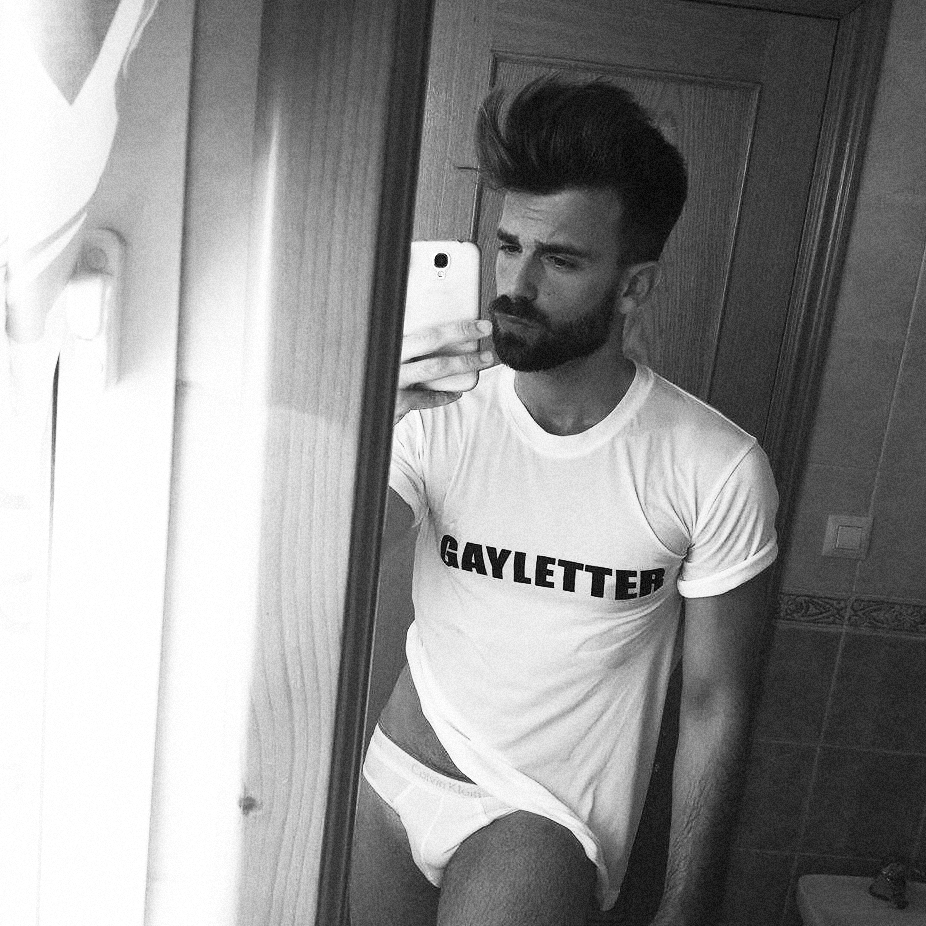 We asked him to take some selfies wearing our GAYLETTER t-shirt, look at that facial hair, those eyes, so sexy!