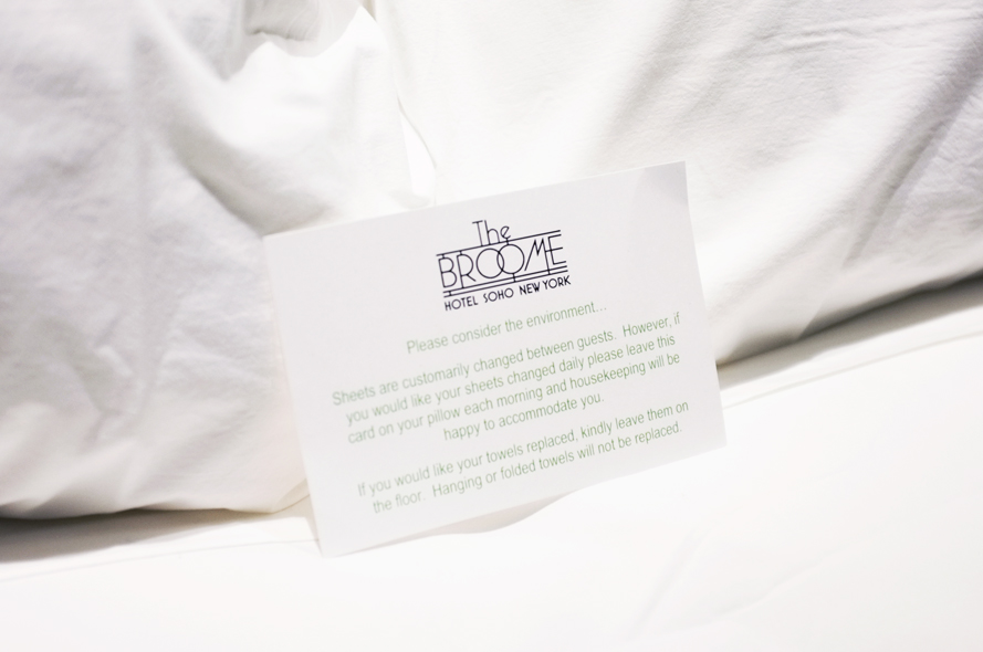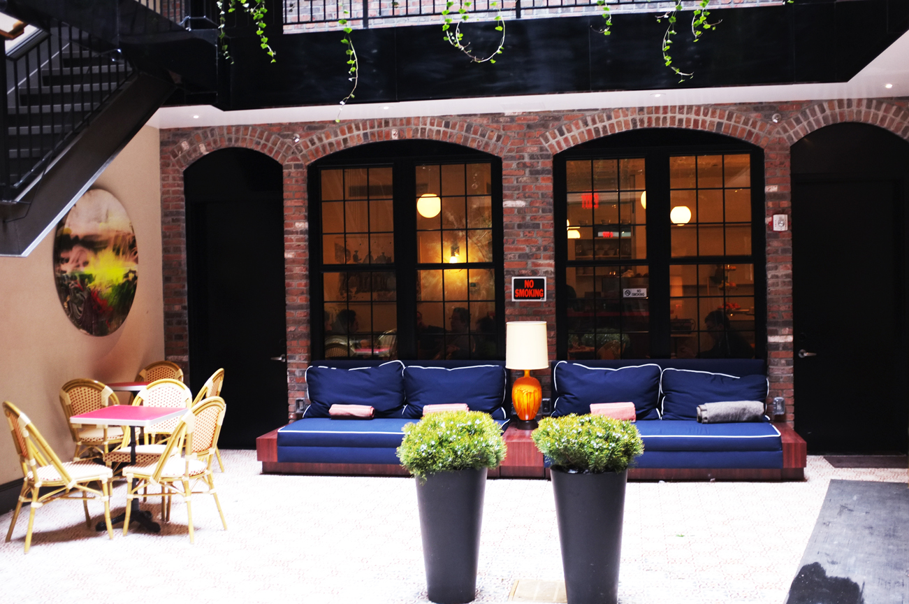 Abi and I recently spent a night in the penthouse suite at The Broome Hotel in SOHO. The hotel is very unassuming, it’s entrance you could easily walk by without noticing what was going on inside. It’s a 14 room establishment that has something pretty incredible going for it: a gorgeous open-air courtyard it’s built around. For a city as tightly packed as NYC it feels almost sacrilegious to not fill in every square foot of available space, but boy is it wonderful edition to the hotel.