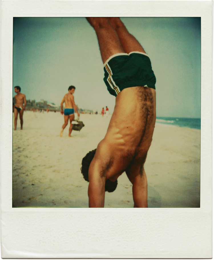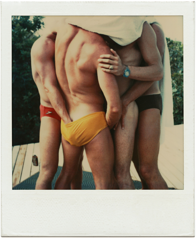 Five years later, it’s gratifying to see that his stunning collection, which languished in shoeboxes for years while he shut away those happy-turned-painful memories, has found its way into a gorgeous book, Tom Bianchi: Fire Island Pines, Polaroids 1975-1983 (Damiani, $50.00). In his long, chatty introduction, full of memories of wild theme parties and midday outdoor orgies, Bianchi notes that Polaroid film confers a “painterly” quality. That is abundantly evident here; the dunes, surf, cedar homes and blue sky of the Pines have never looked more hazily beautiful. Then there are the men — hundreds of them, many of them naked, all with exactly the same aviator glasses, moustaches, tiny red running shorts and lithely muscled late-seventies body. They’re a reminder that as much as the pre-AIDS Pines was a dreamlike haven for a closeted, disliked minority, it served the upper tier of that minority — uniformly slim, white, well-employed and beautiful, at least through Bianchi’s reverential lens.