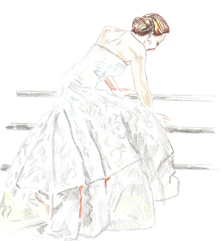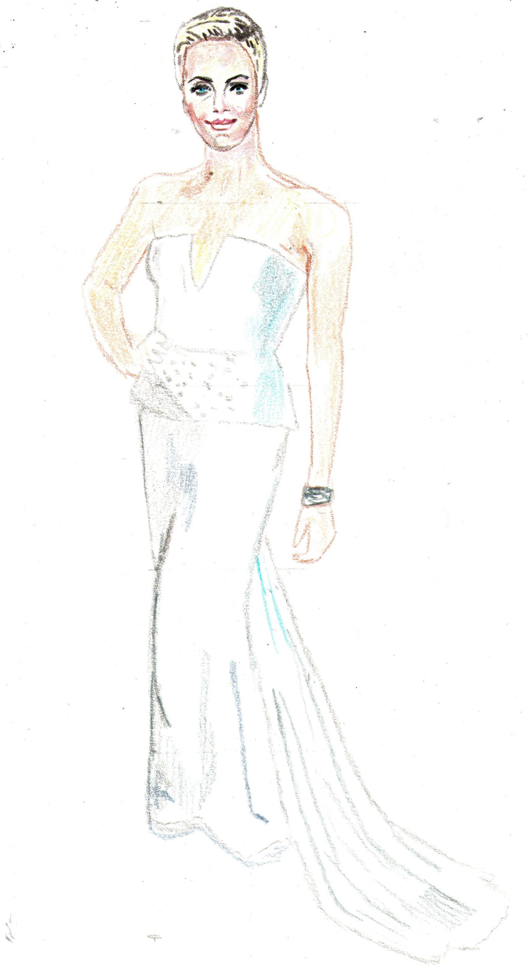 We asked illustrator Devin Wallace to draw some of the most memorable moments of the night. He didn’t illustrate any of the men because most of them looked the same — white men wearing the usual Oscar uniform of a black tuxedo, nothing new, some fit, some didn’t, blah, blah blah.