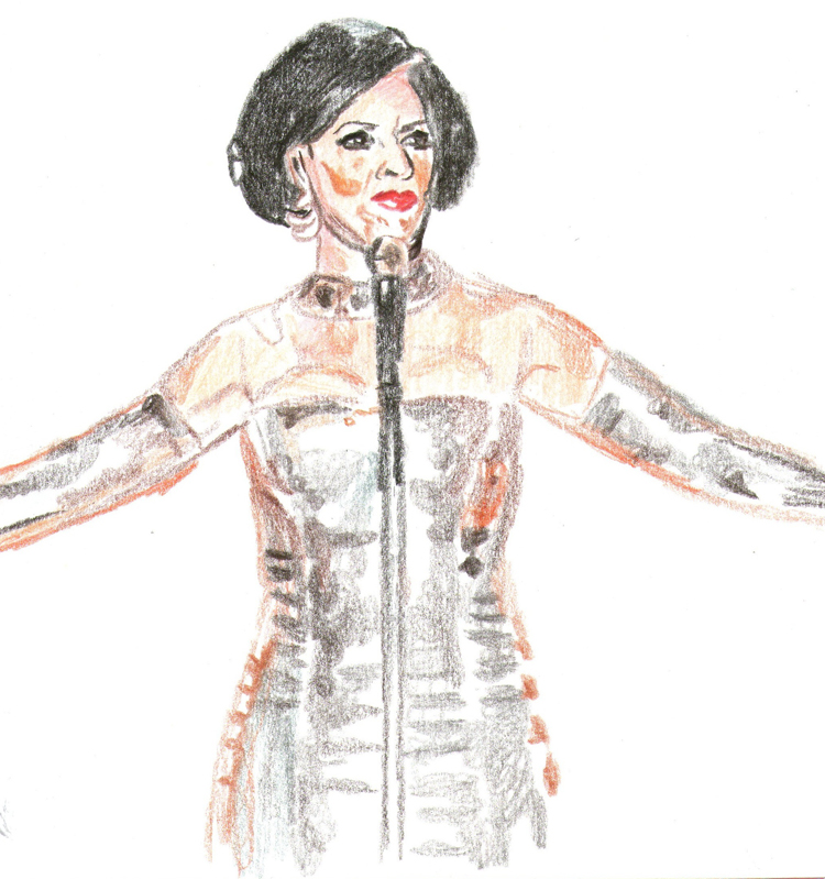Shirley Bassey. More like Shirley Badass! We wanted to Goldfinger ourselves after hearing her belt out that tune. She sang it with such force you forgot she was 76 years old. Dress by Versace.
